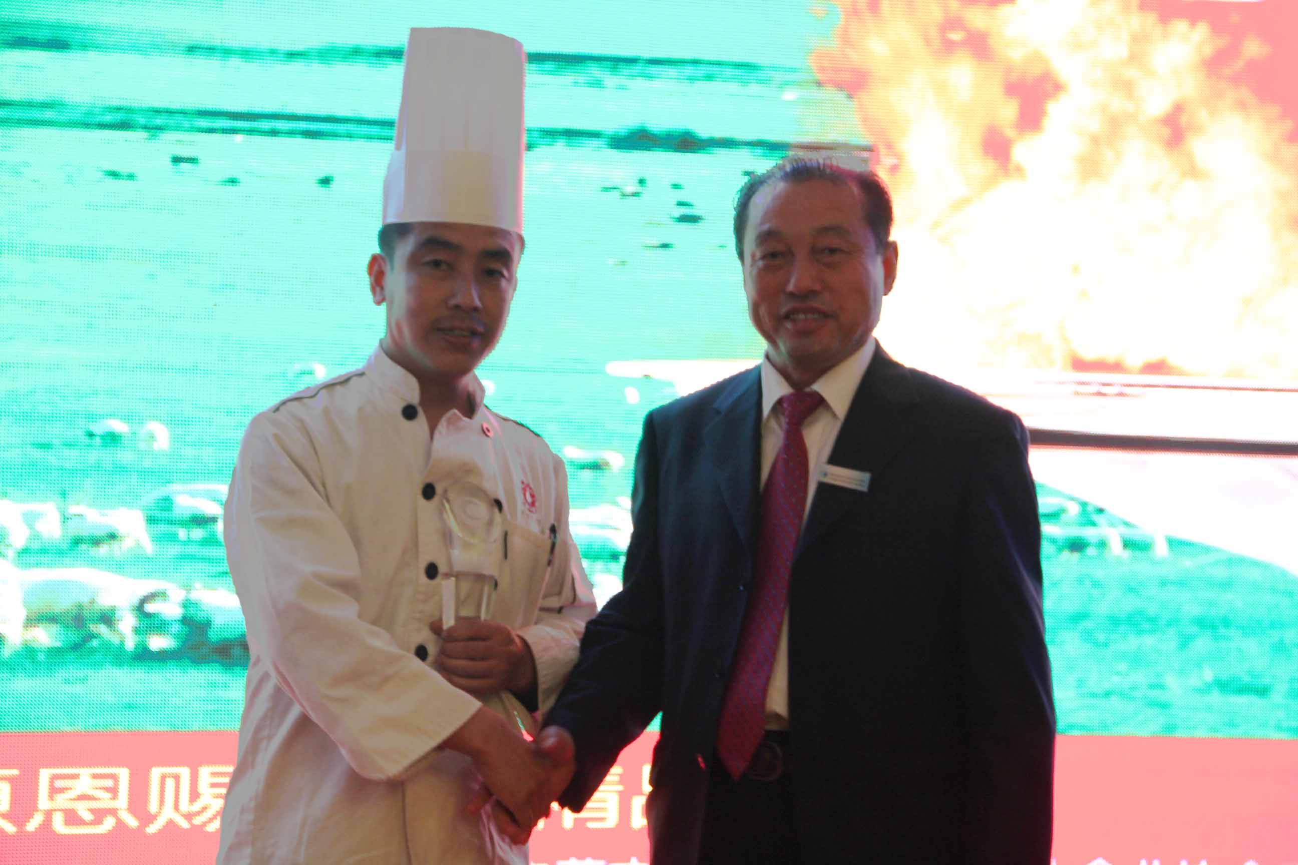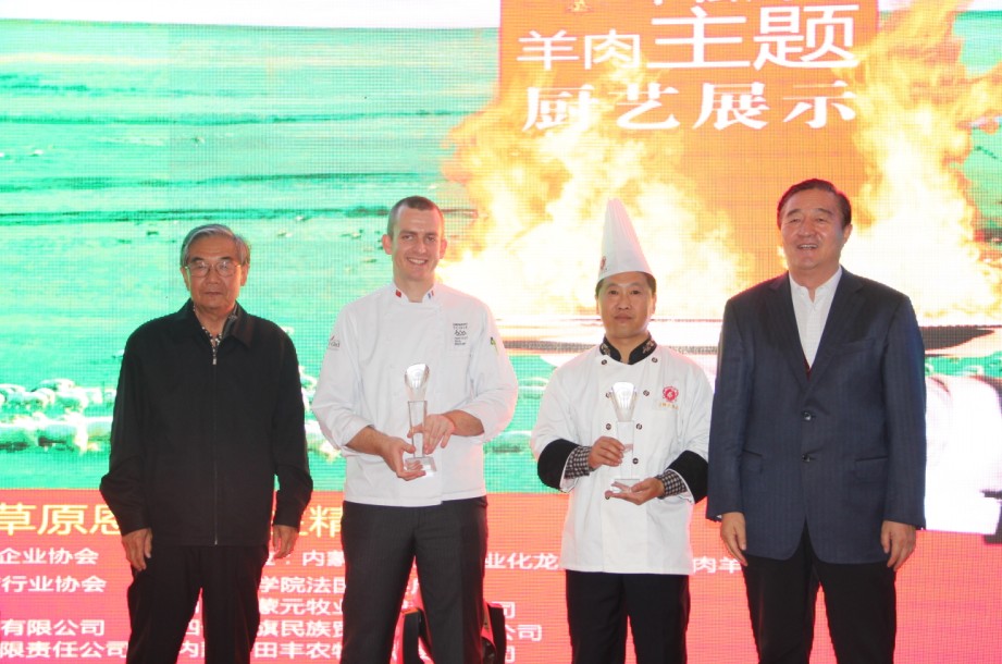 本次廚藝比拼展示主要是中法兩國(guó)廚師之間的高手對(duì)決。兩國(guó)大廚根據(jù)羊肉的不同部位烹飪出各道菜品。本次比拼的標(biāo)準(zhǔn)主要是養(yǎng)生、創(chuàng)意和具有地域特色。各評(píng)委經(jīng)過(guò)仔細(xì)品嘗后評(píng)選出特等獎(jiǎng)、一等獎(jiǎng)各一名。最終由遠(yuǎn)道而來(lái)的法國(guó)大廚獲得特等獎(jiǎng),我們中國(guó)廚師隊(duì)獲得一等獎(jiǎng)。原副主任雷·額爾德尼和原副主席傅守正為獲獎(jiǎng)選手頒發(fā)獎(jiǎng)杯。