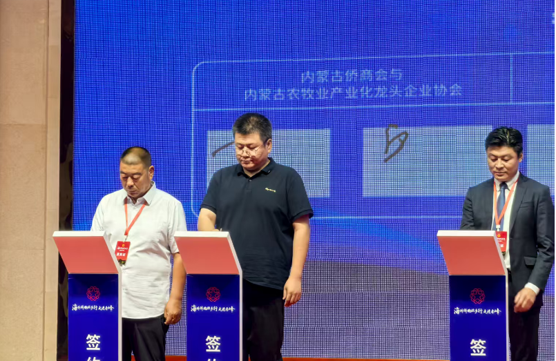 儀式現(xiàn)場還舉行了內(nèi)蒙古僑聯(lián)海外委員聘書頒發(fā)儀式和簽約儀式,內(nèi)蒙古農(nóng)牧業(yè)產(chǎn)業(yè)化龍頭企業(yè)協(xié)會(huì)副會(huì)長單位赤峰東榮羊絨制品有限公司代表協(xié)會(huì)進(jìn)行簽約。