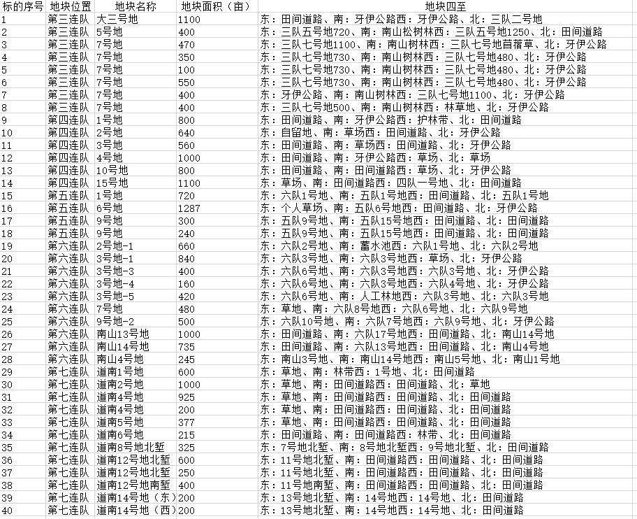 6.掛牌價(jià):見(jiàn)明細(xì)表(掛牌價(jià)為每畝耕地應(yīng)當(dāng)支付的租賃底價(jià))