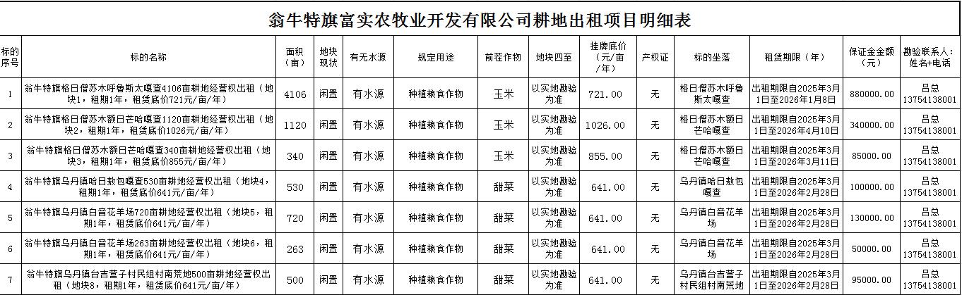 翁牛特旗富實農(nóng)牧業(yè)開發(fā)有限公司約7579畝耕地經(jīng)營權出租