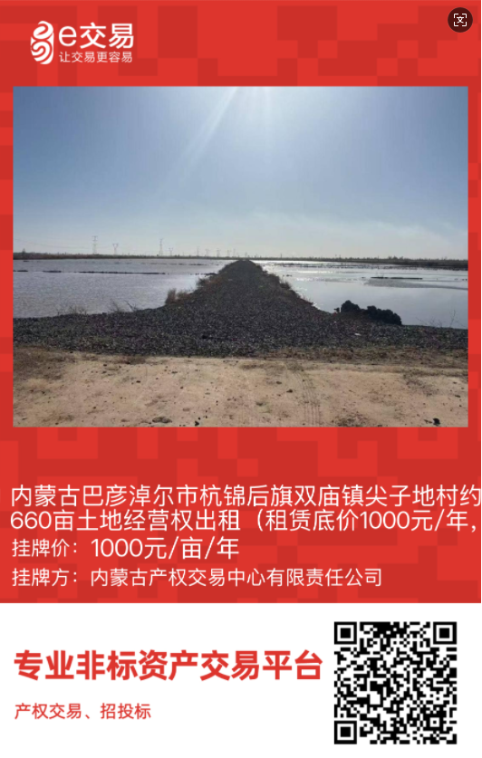 巴彥淖爾市首宗規(guī)范化農(nóng)村產(chǎn)權交易掛牌!杭錦后旗雙廟鎮(zhèn)尖子地村660畝高標準農(nóng)田經(jīng)營權公開出租