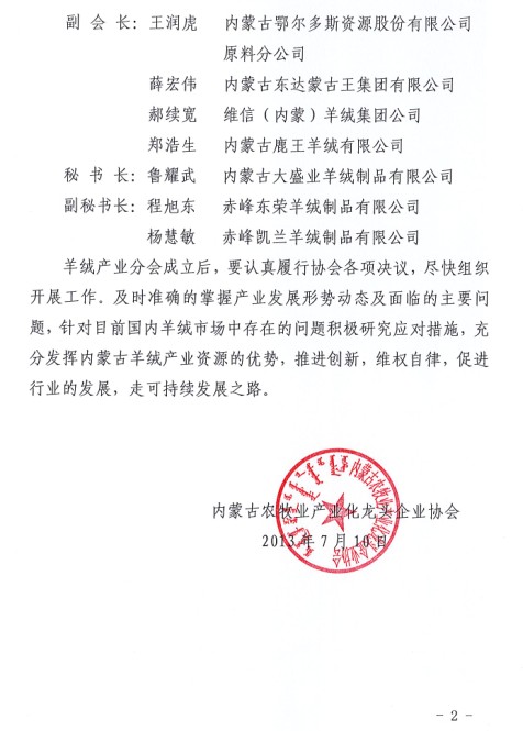 關(guān)于成立羊絨產(chǎn)業(yè)分會(huì)的通知