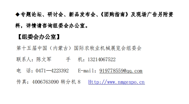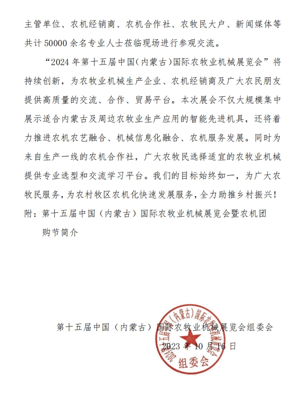 關(guān)于召開“2024年第十五屆中國(內(nèi)蒙古)國際農(nóng)牧業(yè)機(jī)械展覽會”通知