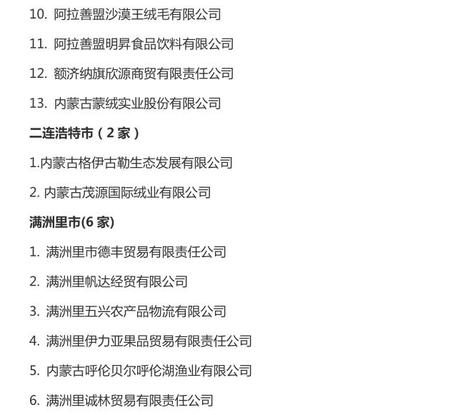 企業(yè)名稱:截止2016年末自治區(qū)級(jí)農(nóng)牧業(yè)產(chǎn)業(yè)化 重點(diǎn)龍頭企業(yè)名單​