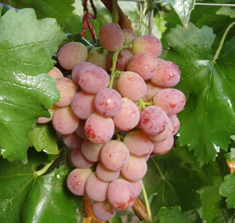 失富羅莎:別名早紅提,由日本引進(jìn)。平均穗質(zhì)量650g,果實(shí)長(zhǎng)橢圓形,平均粒質(zhì)量912g,果皮紅色或紫紅色,果肉較軟多汁,味甜,含糖17%~18%,不易脫粒。