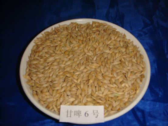 甘啤6號(hào)大麥屬二棱皮大麥,春性,生育期102天,中熟。幼苗半匍匐,莖稈彈性好,均勻株高80厘米。葉片開(kāi)張角度大,冠層透光好,抽穗時(shí)株型松緊中等,穗全抽出,閉穎授粉,穗長(zhǎng)方形。灌漿后期穗軸略有彎曲,穗層整潔,均勻穗長(zhǎng)8.0厘米,穗莖節(jié)26.5厘米。疏穗型,單株有效分蘗2.5個(gè),長(zhǎng)芒,黃色鋸齒。穗粒數(shù)23粒左右,千粒重4550克,蛋白質(zhì)含量8.710.5%,選粒率(2.5毫米)8593.0%。粒色淡黃,種皮薄,粒徑大,皺紋細(xì)膩,籽粒卵形,粉質(zhì);抗倒伏,抗干熱風(fēng),抗條紋病和其它大麥病害。